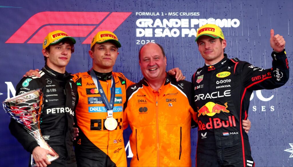 Le Grand Prix de São Paulo 2025 aura offert tout ce qu’on aime en F1 : des rebondissements, des dépassements et une tension constante. Parti en pole, Lando Norris a mené de bout en bout pour décrocher une victoire magistrale, creusant encore son avance au championnat.Derrière lui, Kimi Antonelli a résisté à la furie de Max Verstappen dans les derniers tours pour décrocher une deuxième place héroïque, son meilleur résultat en carrière. Une performance saluée par tout le paddock.